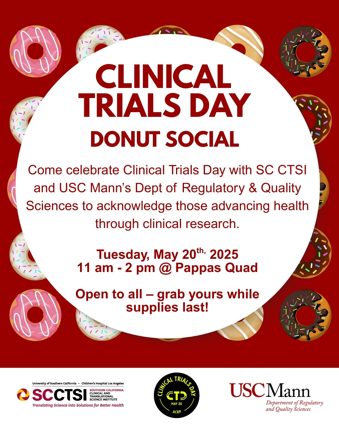 Come celebrate Clinical Trials Day with SC CTSI and USC Mann’s Dept of Regulatory & Quality Sciences to acknowledge those advancing health through clinical research.