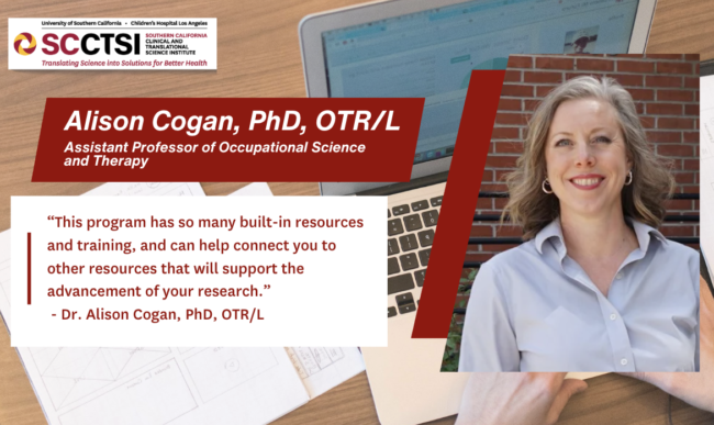 This program has so many built-in resources and training, and can help connect you to other resources that will support the advancement of your research. It is also valuable for building connections with experts associated with all the different services that SC-CTSI offers, like statistical support and informatics.