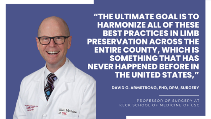 The Los Angeles County Department of Health Services (DHS) is creating a system-wide Limb Preservation workgroup to protect more patients from the trauma of high-level amputation and allow them to live healthier lives. The multi-specialty, first-of-its-kind countywide program will bring clinician teams together to identify, grade, and treat diabetic foot ulcers and enhance follow-up care to prevent relapses, among other measures. This rapid, coordinated system could make the difference between many patients losing or saving a foot or leg.