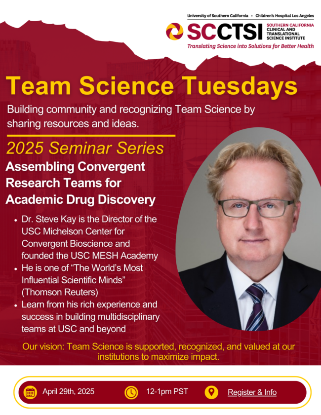 - Learn from his rich experience and success in building multidisciplinary teams at USC and beyond